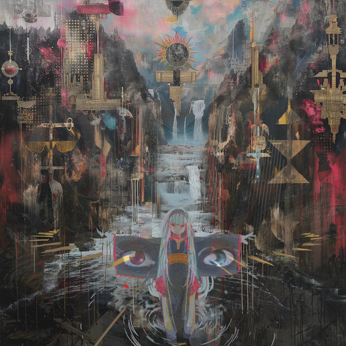 /imagine prompt: "岩に沿って流れる夜の川。足元を濡らしながら歩いてゆく。視界を覆う霧が、とつじょ広間のように拓ける。そこには数々のオーパーツが浮かんでいた。痙攣する時計。真鍮のピアノ。エジプシャンな紋様。振り子がぶら下げられた天秤。ラカンの銅像。それらが織りなす暗いコラージュを前に、処女が立っていた。ナイフのような音が飛来する。「人間はみずからの鼓膜を自罰する装置なのだ」"(text by 永良新)