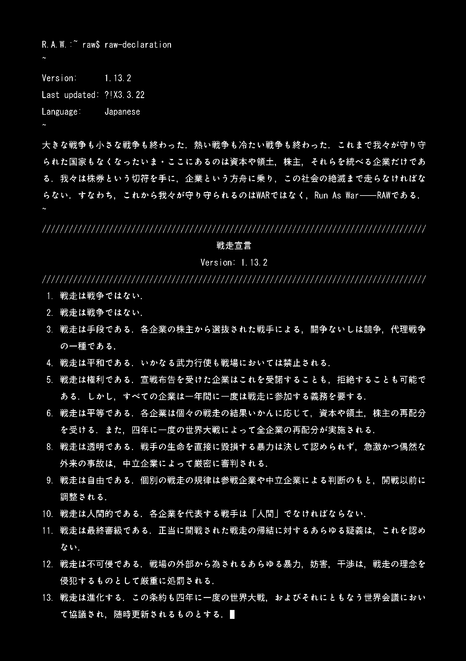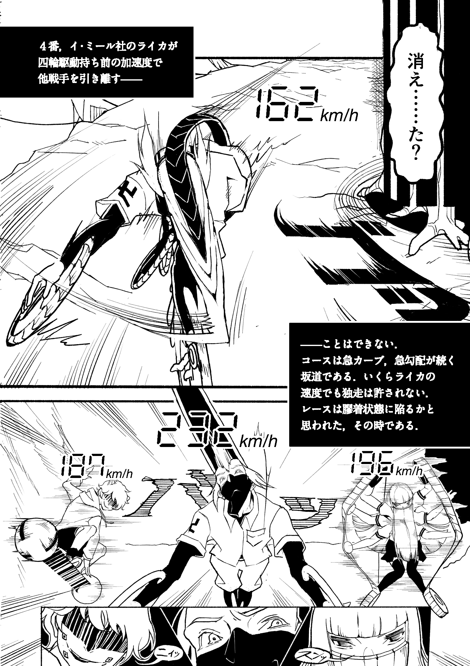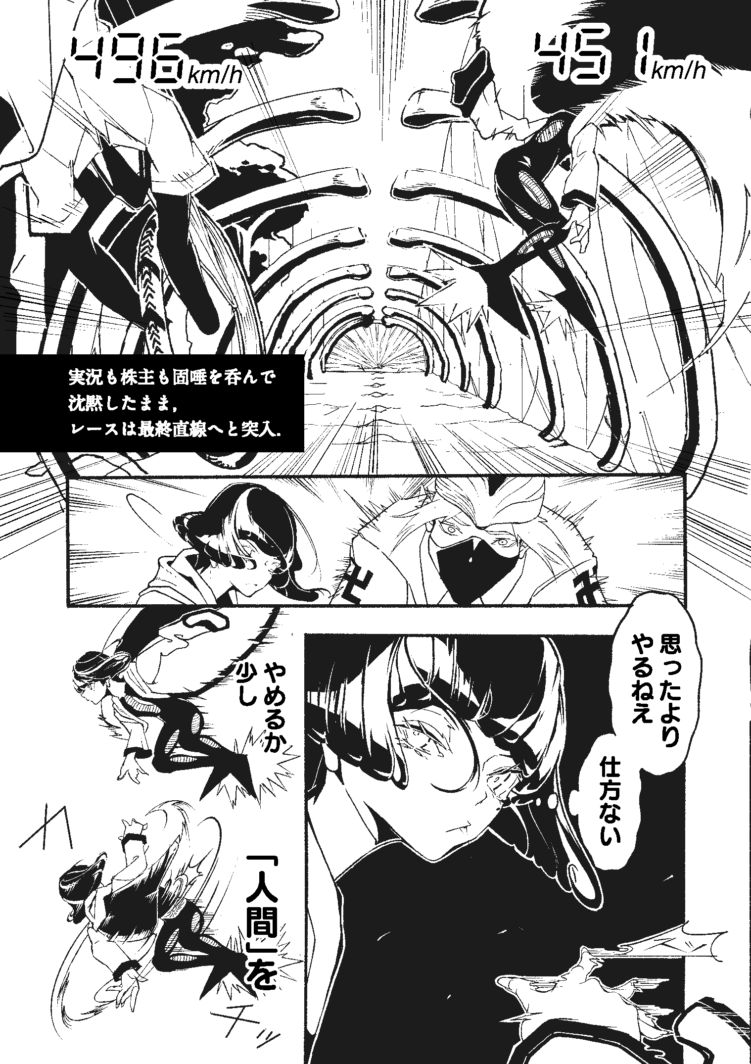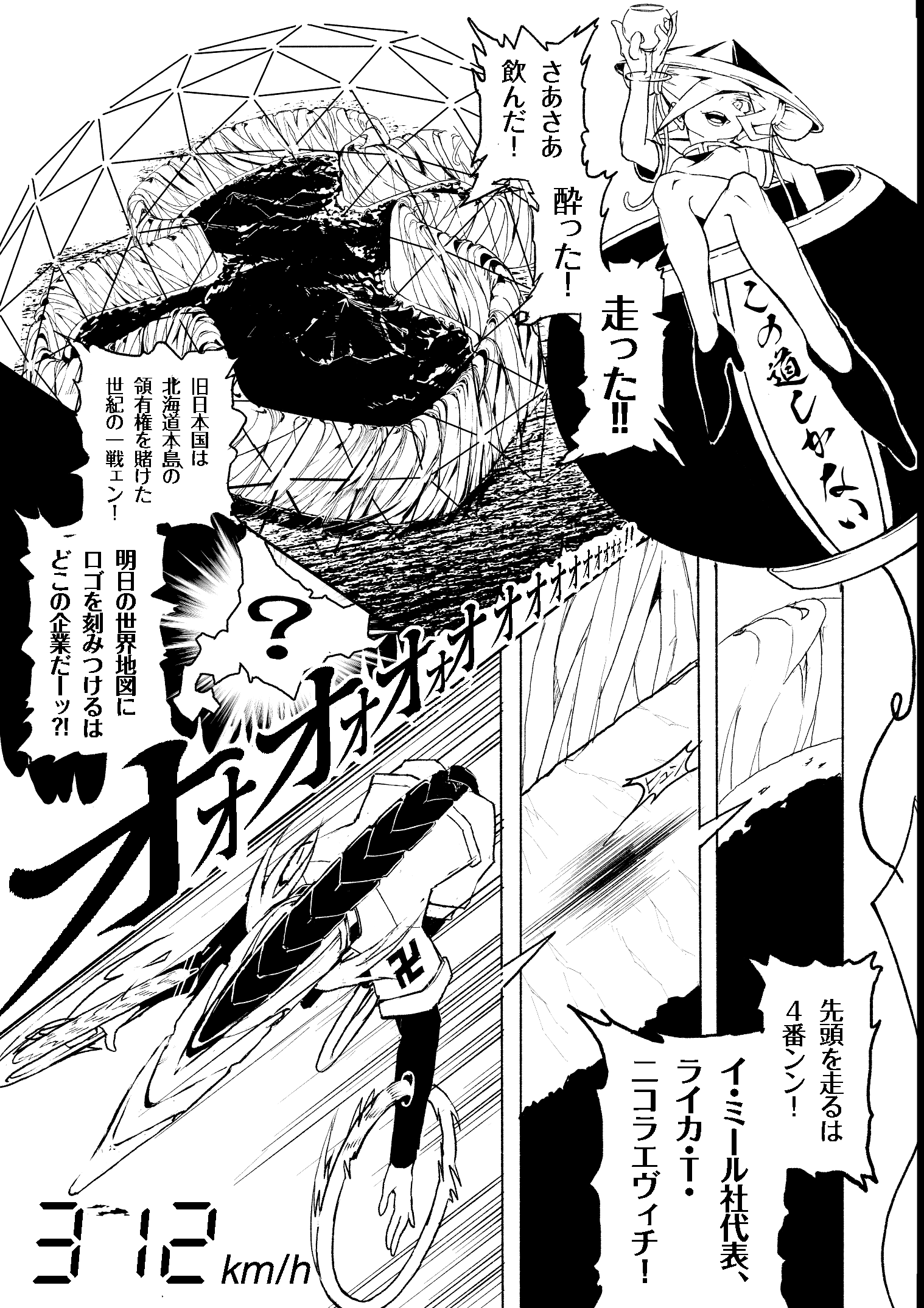 戦走、コーポライズされた戦手たちによるを駆使した超絶なレース。領土と富の獲得を目指し、北海道杯GⅢに臨む超個性的な4人の戦手たち。《イ・ミール社》のライカ・T・ニコラエヴィチ、《R.D.C》のヨルハ・スファイバー、《憂愁重工》のマー・ジン、そして、謎に包まれたベンチャー企業の平ミル。ブチ狂っているレースを生き残り、勝者となるのは誰か。加速、バイオ・パンク、改造された身体、ポスト・アポカリプス、変身、暴流の如き情報量と引用、驚嘆の展開。新鋭の著者が、圧倒的初速と衝動でぶっ放した処女作に乾杯を。(編・平大典)