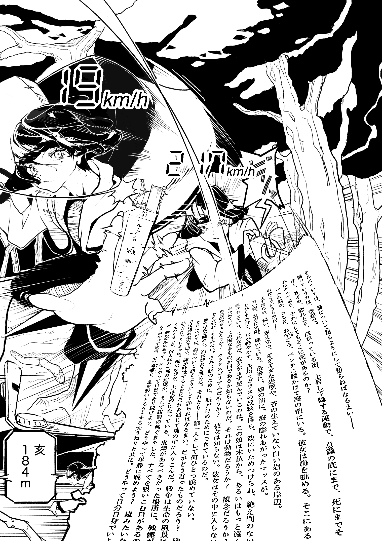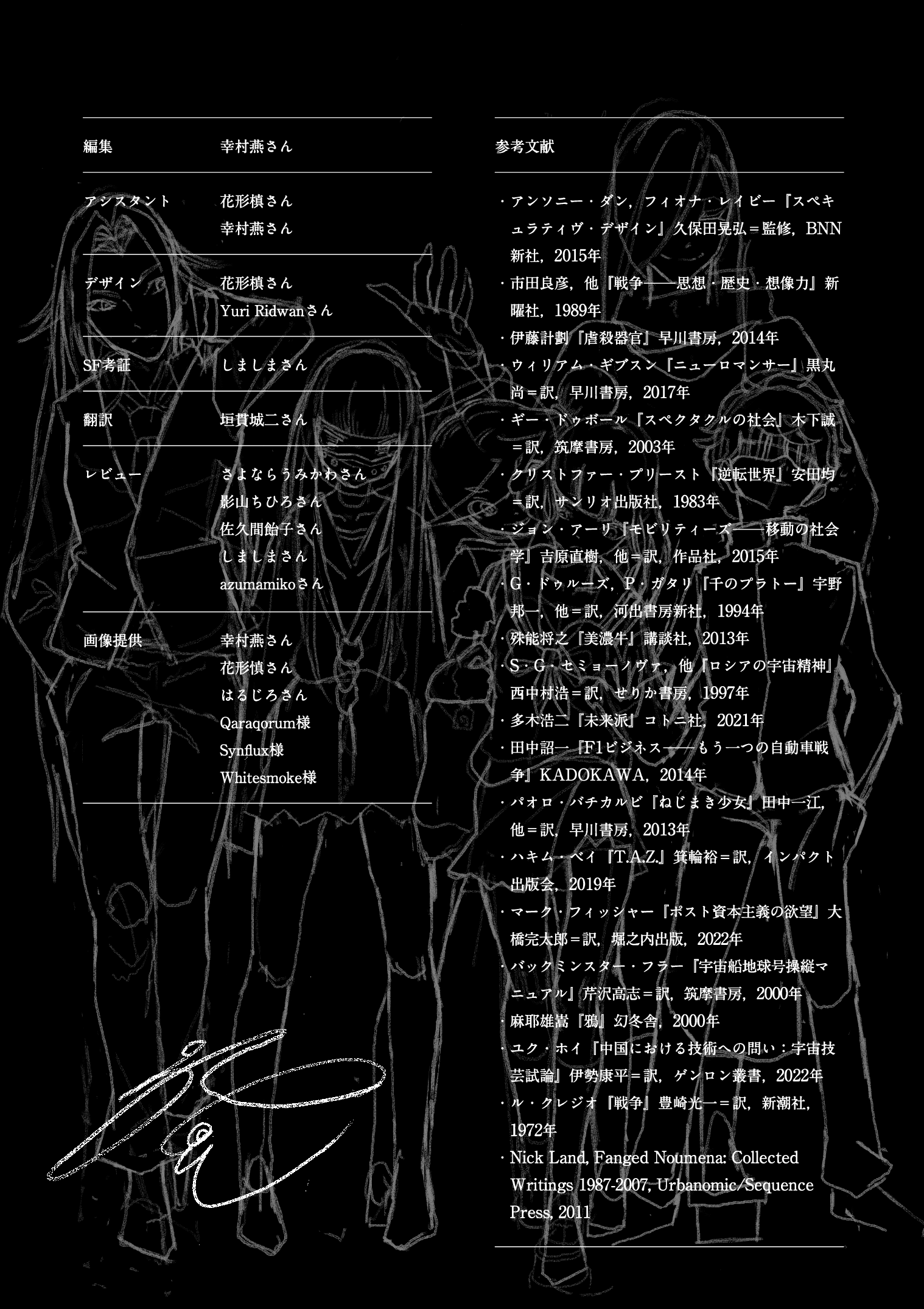 スピードに全てを捧げた身体改造者どもが爆速で駆け抜け、超能力者は文字通りの“ワンマン”ライブを決行する。ポスト・アントロポセン・アドベンチャーが幕を開け、月面からはパチンコ玉と化した人間が降り注ぐ――SFの至上命題が「想像を絶するヴィジョンを具現化する」ことにあるならば、永良新の筆はまさしくそのためのツールである。漫画家・デザイナー・小説家といったさまざまな顔を使い分ける著者による、第一作品集。その収録作は漫画・小説はもちろん、原作ネームやイラストなど幅広く、メディアと手法を横断して繰り広げられる想像/創造の実験の数々を余すところなく堪能できる。もしあなたが、今もっとも鋭く、疾く、クレイジーなSFと衝突したいのであれば、一刻も早くこのページを開いてほしい。